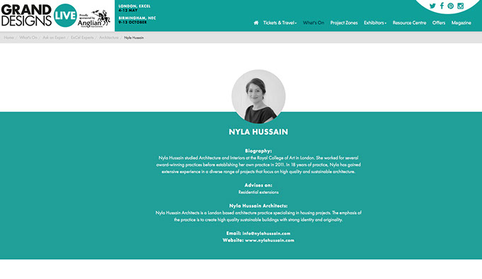 Nyla Hussain will be sharing her expertise this year's Grand Designs Live show.